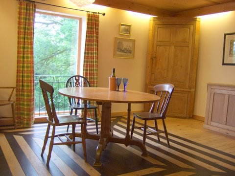 Steps lead from the kitchen to the first floor with its separate dining room and spacious beamed living room. There are two double bedrooms (one en-suite) and one twin-bedded room and a separate bathroom/wc with full size bath and over-bath shower. All rooms on the first floor have attractive pine floors and ceilings. Please note that as the bedrooms are on the first floor the property may not be suitable for those people having difficulty with stairs. Cots and highchairs are available for children under two years of age at no extra charge.